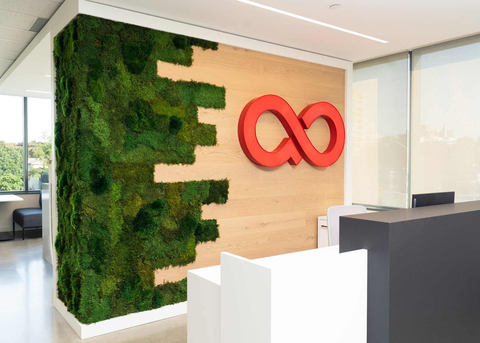 It was important to our client to design the space to be a light, bright and open atmosphere so we incorporated warm wood tones and a large moss wall to bring greenery to the space. The furniture selection was also important as the workstations were “touch down” with no assigned seating. It was also important to incorporate formal and in formal meeting spaces, so staff have a variety of areas the work and meet from. We are so pleased with these results and the space look great!
