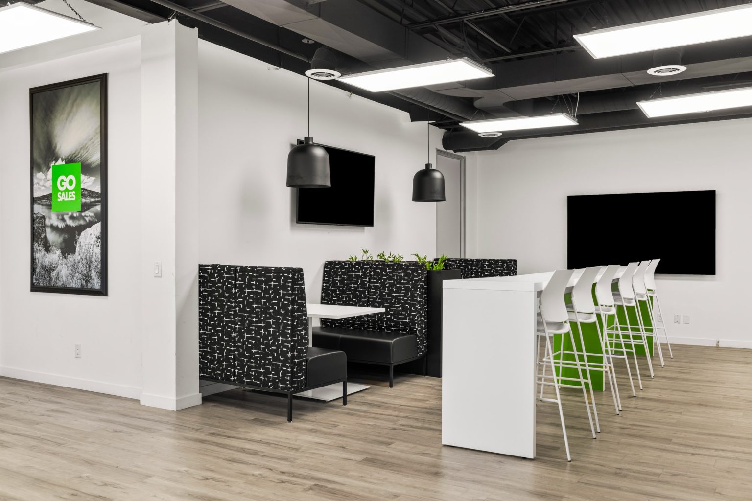 The challenge was to develop a workspace that enhances Go Sales Inc.’s collaborative and competitive spirit. Sensyst adopted an open layout to promote ease of communication and movement—vital for a high-energy sales team. Sensyst implemented fun, dynamic elements and integrated modern, comfortable furniture to keep the environment vibrant and engaging, helping to boost team morale and productivity.