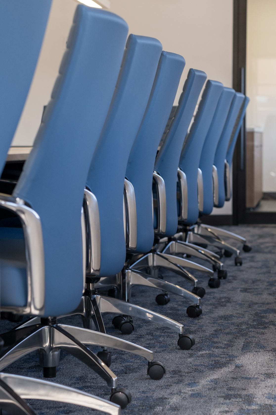 OSWCA/GTSWCA engaged Sensyst to plan, design and furnish their office space. This was a major renovation for their space which featured blue ceilings and yellow walls. Sensyst planned and designed a new layout and new finishes for their space. We incorporated their blue corporate colour with black details while still keeping the space light and bright. We completed this project with beautiful wood toned furniture to make the space warmer without effecting the design details.