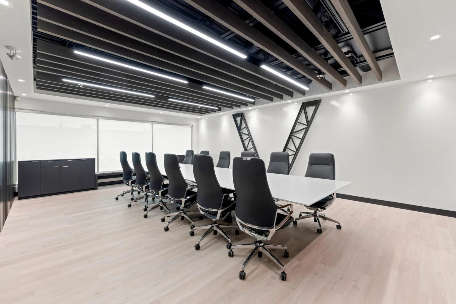 We develop racking plans and pick paths, packing stations, QC zones, cage/secure storage, and mezzanine offices. Finishes and systems are specified for abuse and uptime: high-bay LED lighting, sealed floors, bollards/guardrails, acoustics, and clear wayfinding. Security (cameras/access control) and AV/IT are coordinated with your vendors. Furniture and finish selections are reviewed in our showrooms before sign-off.